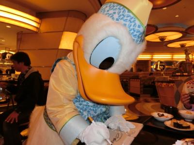 家族全員とキャラクターが写真を撮りたいとき、そばに係りの人などがいなくて、結局お隣のテーブルの方が撮って下さいました。