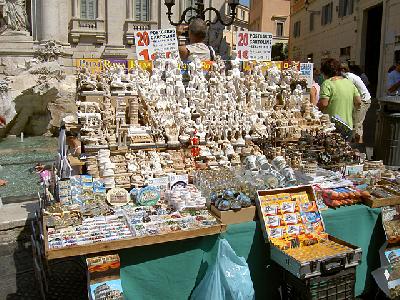 泉の前のお土産屋台。結構グッときたんだけど・・・