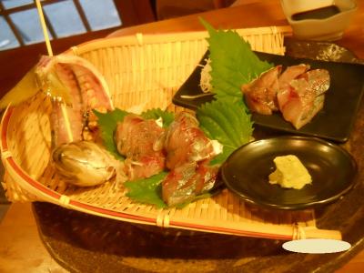 次に鯵のお造り。いきなり姿盛りです。おかしらついています。