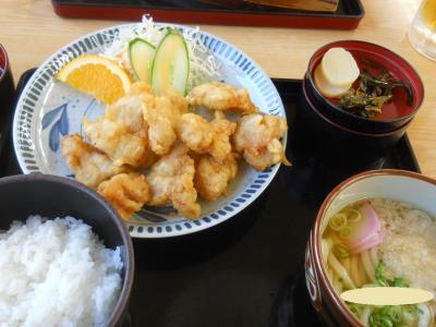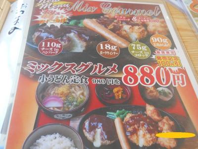 鳥天定食780円とミックスグルメ小うどん定食880円を注文。