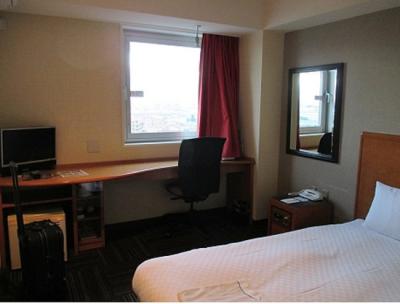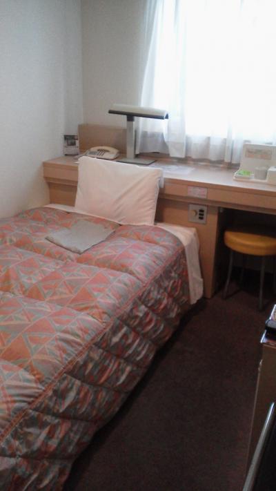 部屋は一人ならばくつろげる広さ(15?くらい)で、窓が小さいからか、薄暗く感じます。