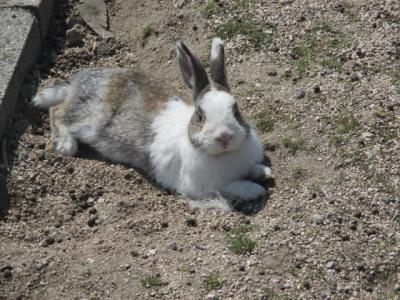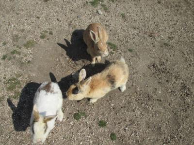 船方下りて、島に着くと、あちこちから兎が駆け寄ってきます。