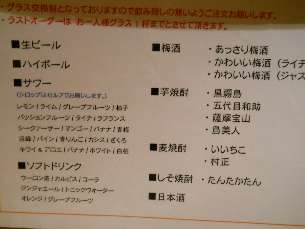 サワーは自分で割るようになっていて、割り材がトレイに入っていて面白いですね。