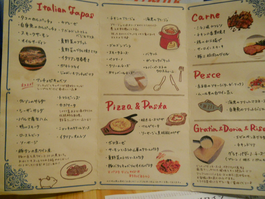 今回は夏限定のオステリアコース、7品飲み放題90分つきの2100円を利用しました。