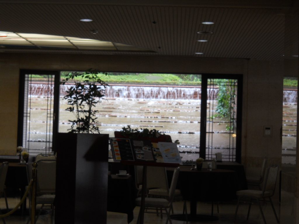 ガラス越しに流れる滝がとてもリラックスできる感じです。