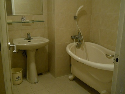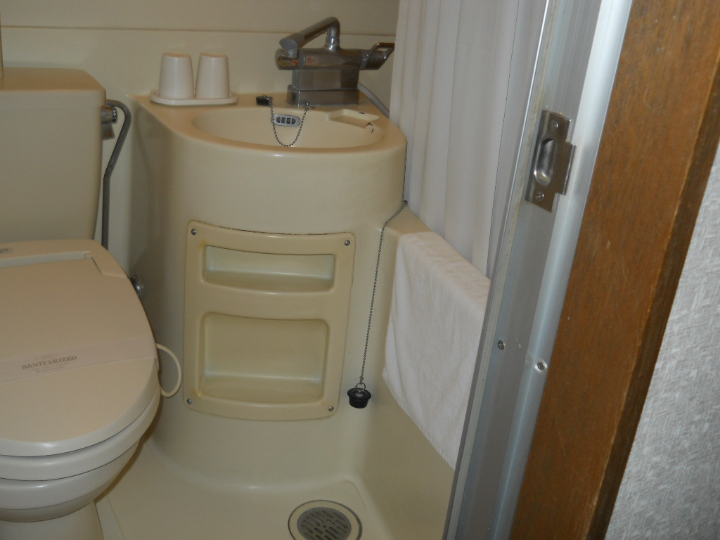 ただでさえシャワーカーテンが無くぬれるのに、バスタブからの排水でバスルームは水浸し~トイレ使う時も脚がぬれます。