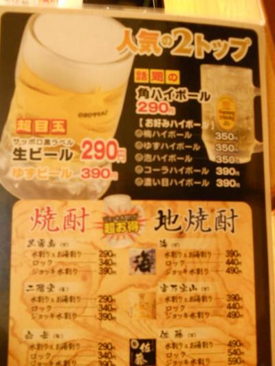 居酒屋メニューは大体同じですが、お刺身の種類は少ないようです。
