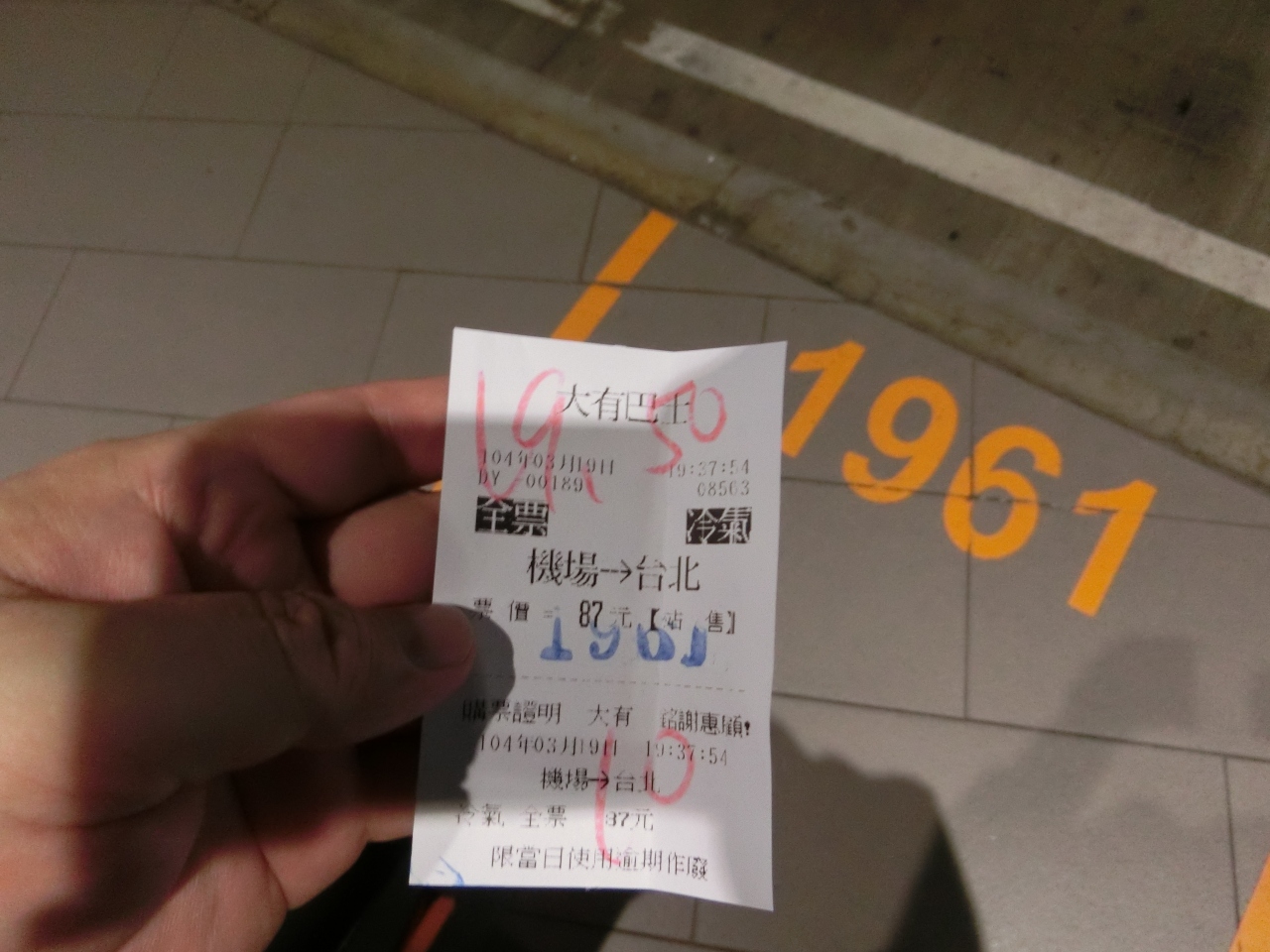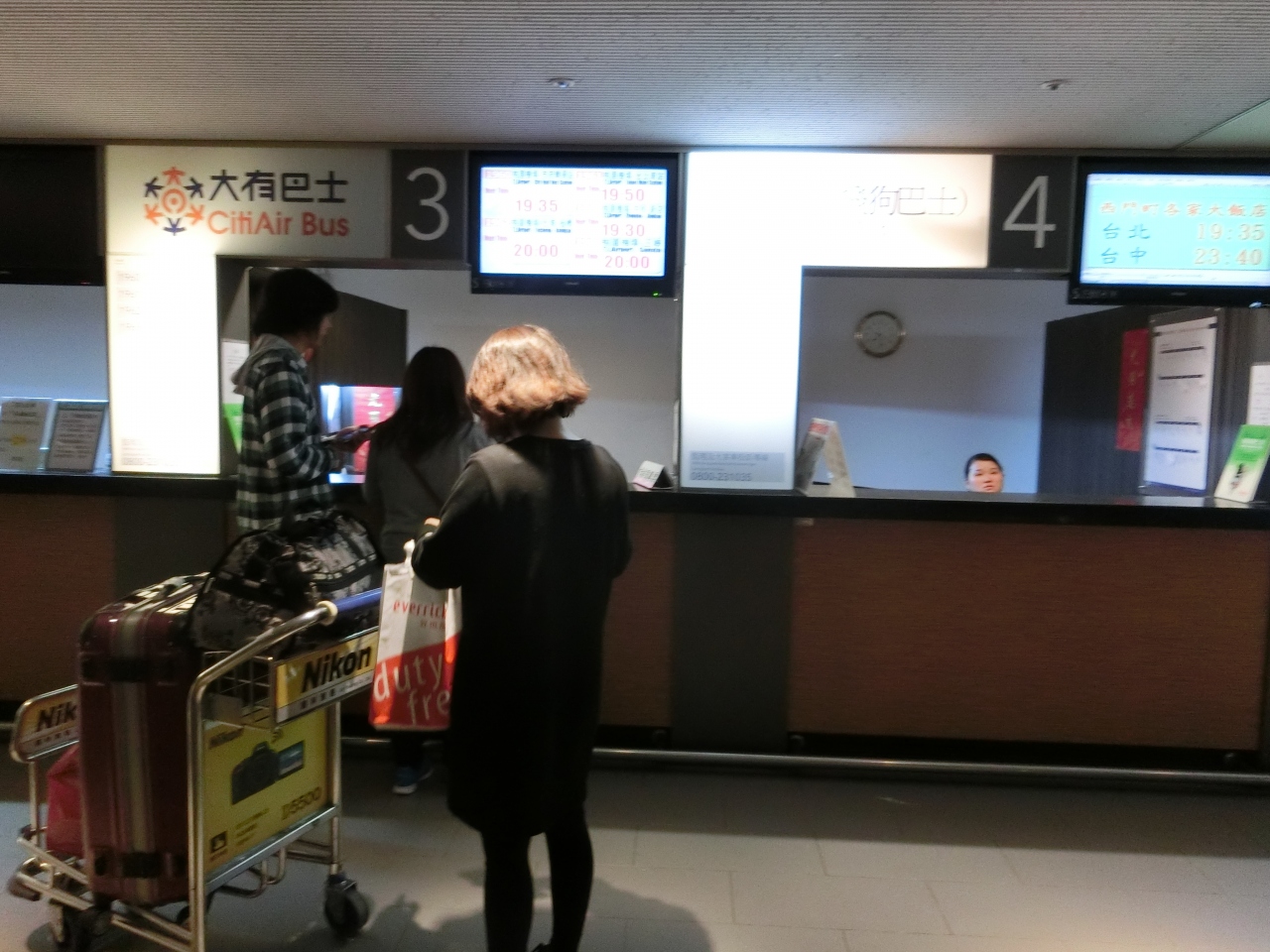 空港のバスカウンターで行先を伝え(カウンターの路線図を指さしてもOK)て、90元を支払います。他のバスが120元前後なのに比べて安いのには理由があります・・・・。