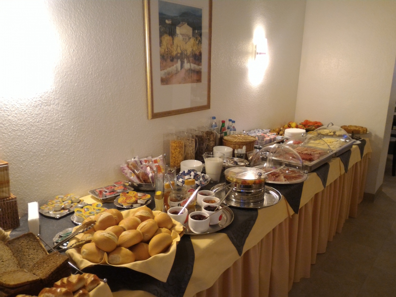 食事はレストランで食べるけど、種類豊富でケーキも充実。