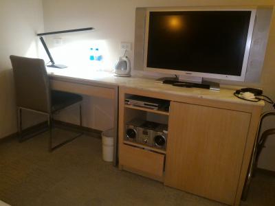 壁掛けTVはパナ製で好感度。 アメニティも十分そろって(髪がゴワゴワにならない良いやつ)のリンスとか。
