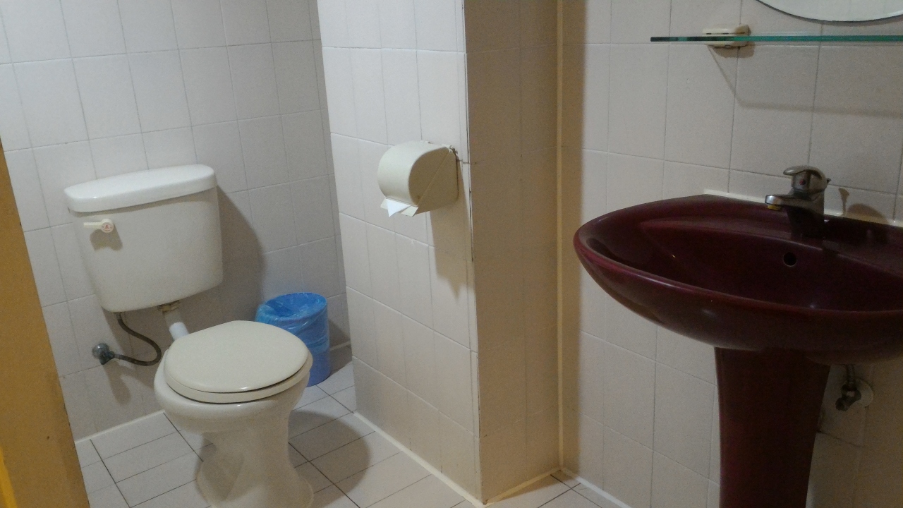 - シャワーブース式です。仕切り板はあるけどちょっと短い