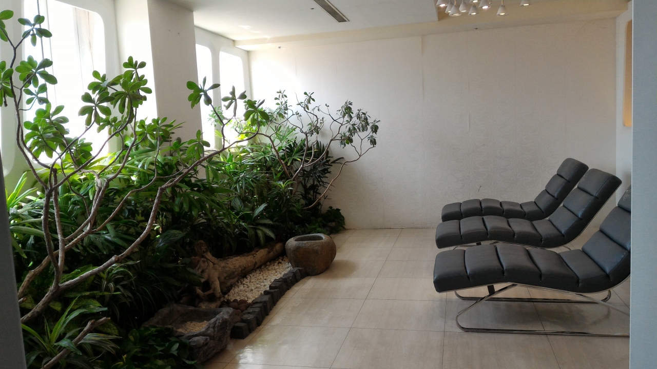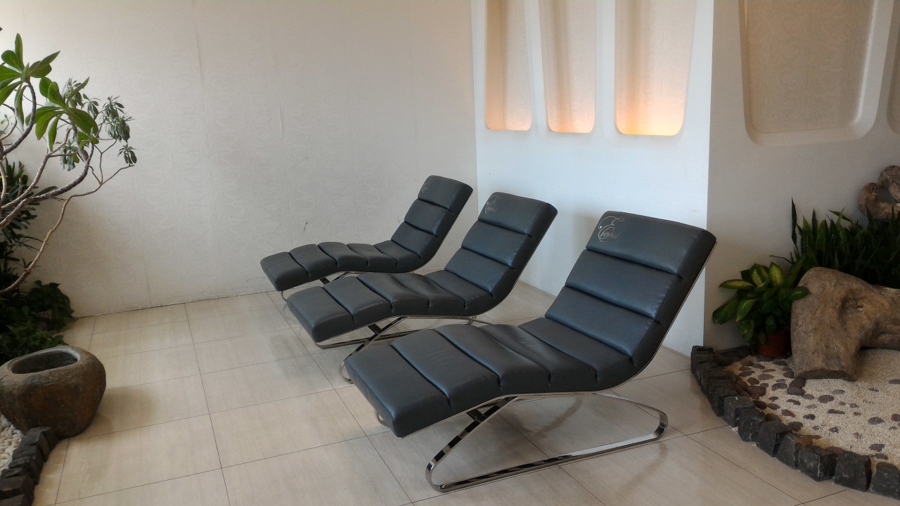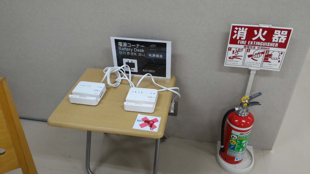 髪を乾かすためには待合ソファーでゆっくり充電しながら待てます。