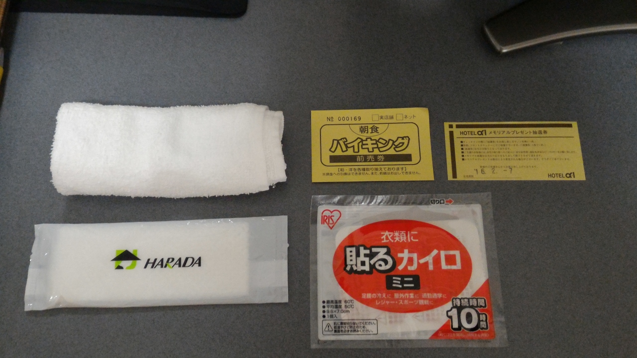 - 1階のセブンイレブンで使えるクーポンと近くのコーヒ屋のチケットをくれます