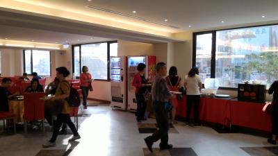 ホテル1階のフロントは7−11のイートインコーナみたいになっていて、