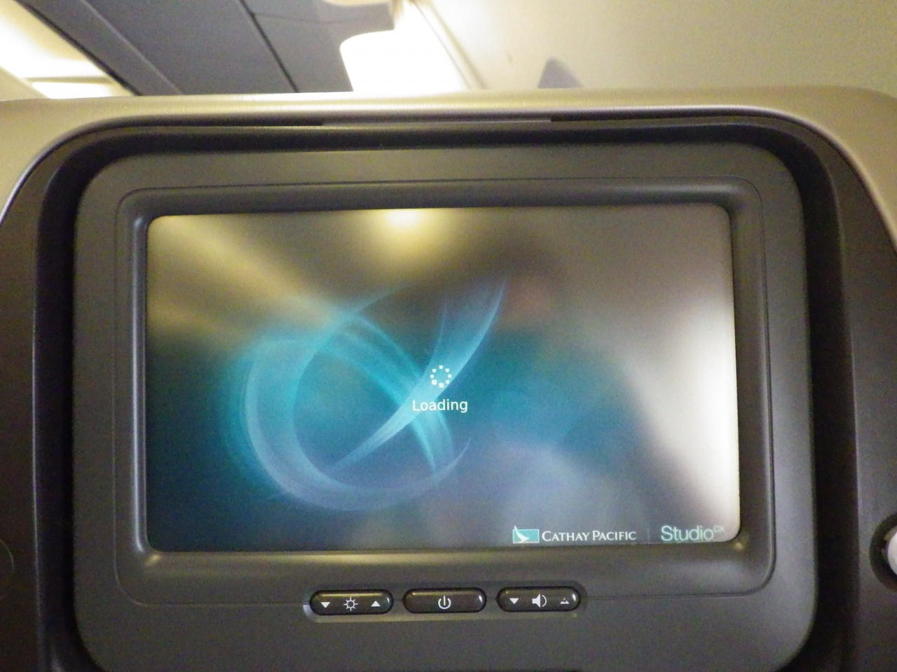 毎回使うキャセイですが、今回使用した飛行機ではモニタが壊れて動かない・・・と。