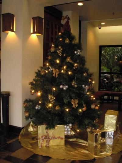『オハナベイビュー』のクリスマスツリー。 キンキラなプレゼント箱、とっ...