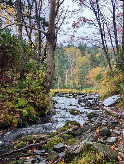 こんな川の脇を歩き、川を渡り、滝を眺め、沼地を通って山頂を目指す登山っ...