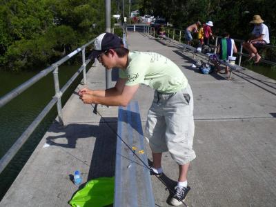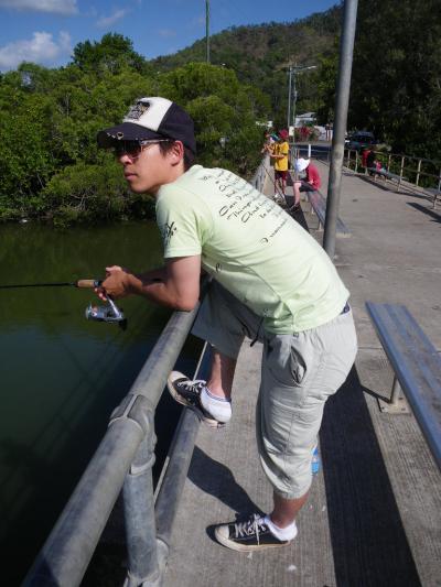 オーストラリアのお約束でみんな仕掛けは大きいです。1時間あまり釣っていましたが結局釣果はなし。ほかも子供たちも釣れてはいないようでした- 旅行時期