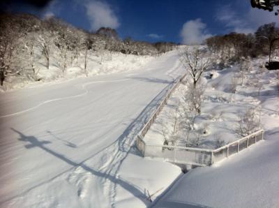 早めに上がって露天風呂につかってゲレンデを眺めていると