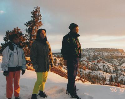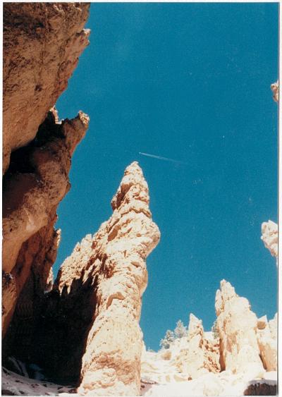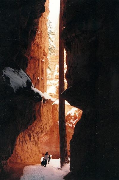 ブライスキャニオンはまだ10月なのにかなりの積雪で、地の果てまで続くオレンジ色の岩でできたおとぎの国のような尖塔群、それに真っ白な雪がかぶさって幻想的な美しさでした