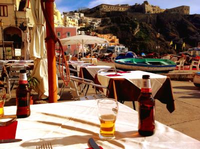 - ナポリからでもポッツォーリからでもフェリー一本で来れるし、便は多い