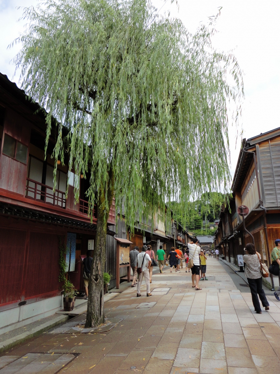 昔のお茶屋街の雰囲気がそのまま残されていて、とても統一感があり落ち着いた街並です。看板も景観に溶け込んでいながらセンスが感じられます。お菓子、漆器、九谷焼き、金箔製品などのお店は品質の良いものが多く、見るだけでもとても楽しめました。お茶屋を改造したカフェも何軒かあり、和スイーツなどに力を入れたメニューがどこも美味しそうでした。私たちはタクシーで行ったので問題なかったですが、大通りからちょっと入ったところにあるので、車で行くなら、少し遠いところに駐車するしかなさそうです。