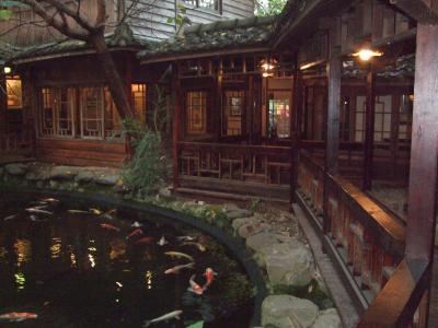 店内に入ると、外の喧騒が嘘のようなしっとりした世界が広がります。鯉のいる池を取り囲む木造の建物がとても落ち着きます。畳の部屋もあるので、まるで家のようにくつろぐことができます。