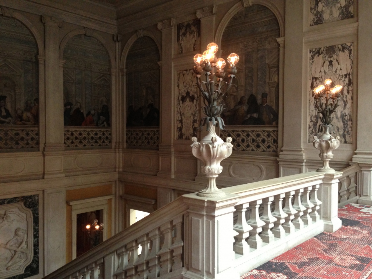 宿泊先の宿主さんに勧められて、初めて知りました。ここは幾つかの映画の舞台としても使われている、かなり素敵な場所です。庭から眺めるコモ湖とそれを囲む山々は美しく、ベンチに座ってゆっくりとしているだけでも気分が良いのですが、せっかくなので建物の中のツアーにも参加します。約束の時間に建物前に集合して、館内の施設や調度品を見て回ります。