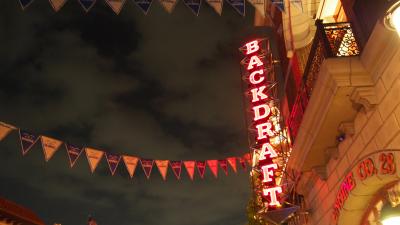映画「バックドラフト」のアトラクション。歩いて進むタイプのアトラクションで、映画の説明、ロケ現場の状況などを解説してくれるので、映画を知らない人でも楽しめると思います。