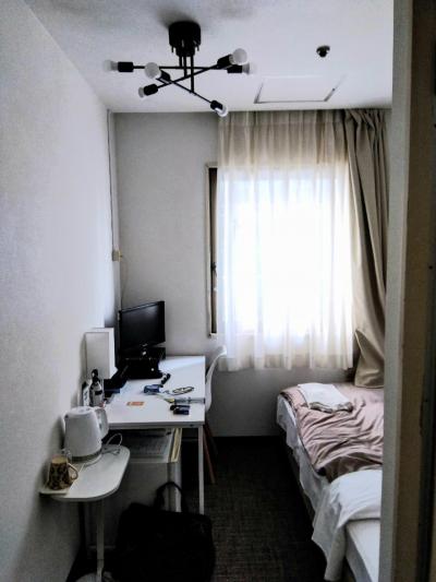 部屋はセミダブルのベットと、小さなテーブルと椅子があり、ビジネスホテルといった感じです。