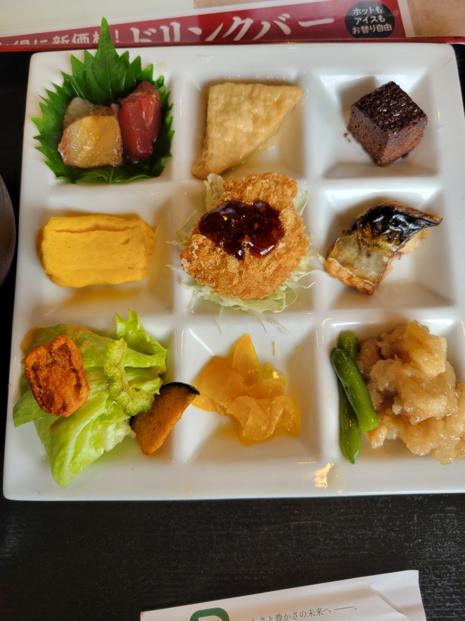 一時位にいきましたが、日替わり定食の680円はなくなったとの事でしたので、九彩定食780円にしました。
