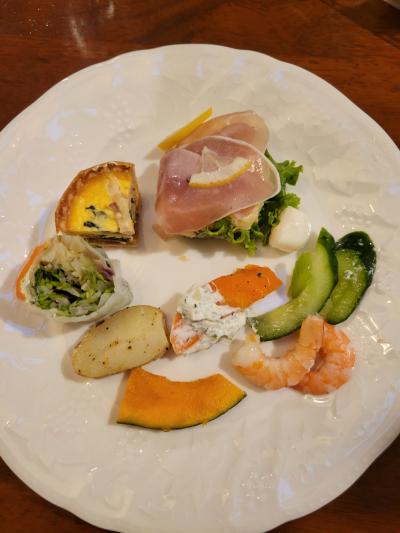 キッシュやポテトサラダや野菜のクリームチーズ添え等々、数種類がセットになっています。