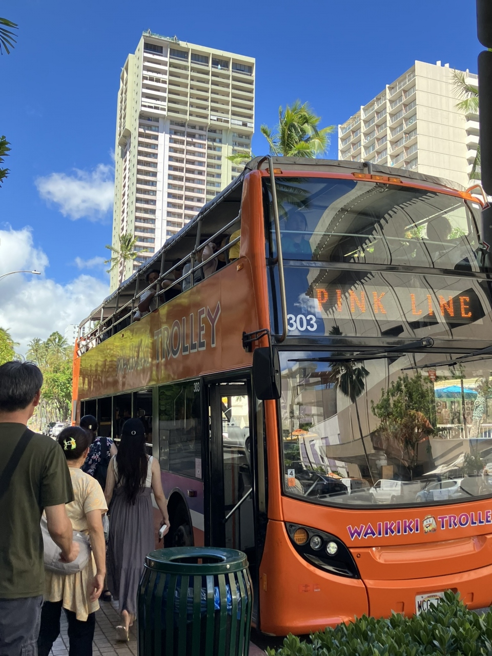 ワイキキトロリー【ピンクライン】はワイキキとアラモアナセンターを結ぶ巡回バスです。