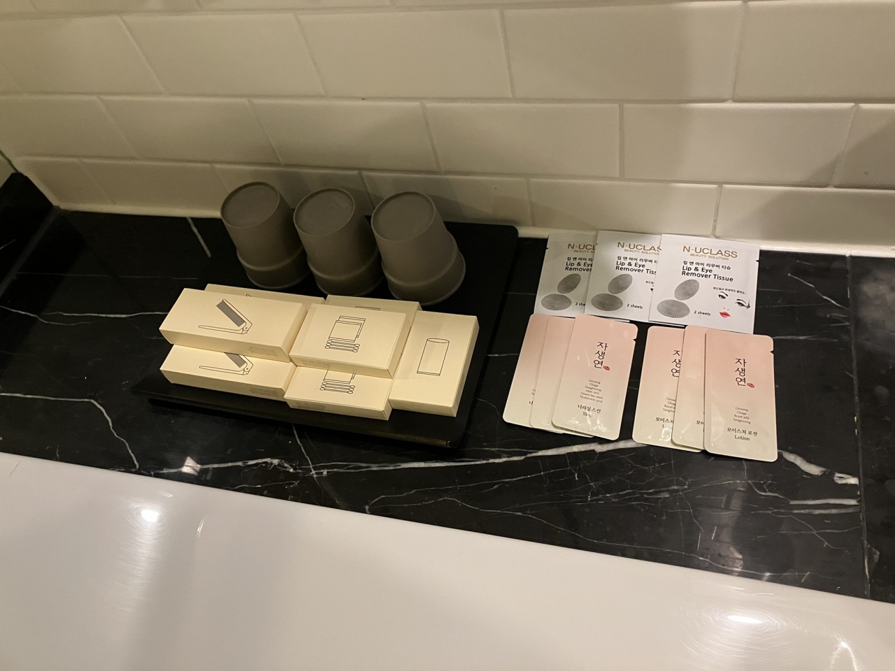 アメニティ類はフロント脇で必要な物を自分で選ぶスタイル。