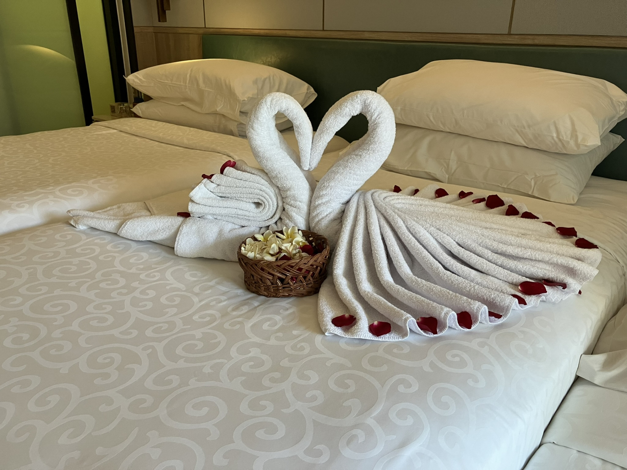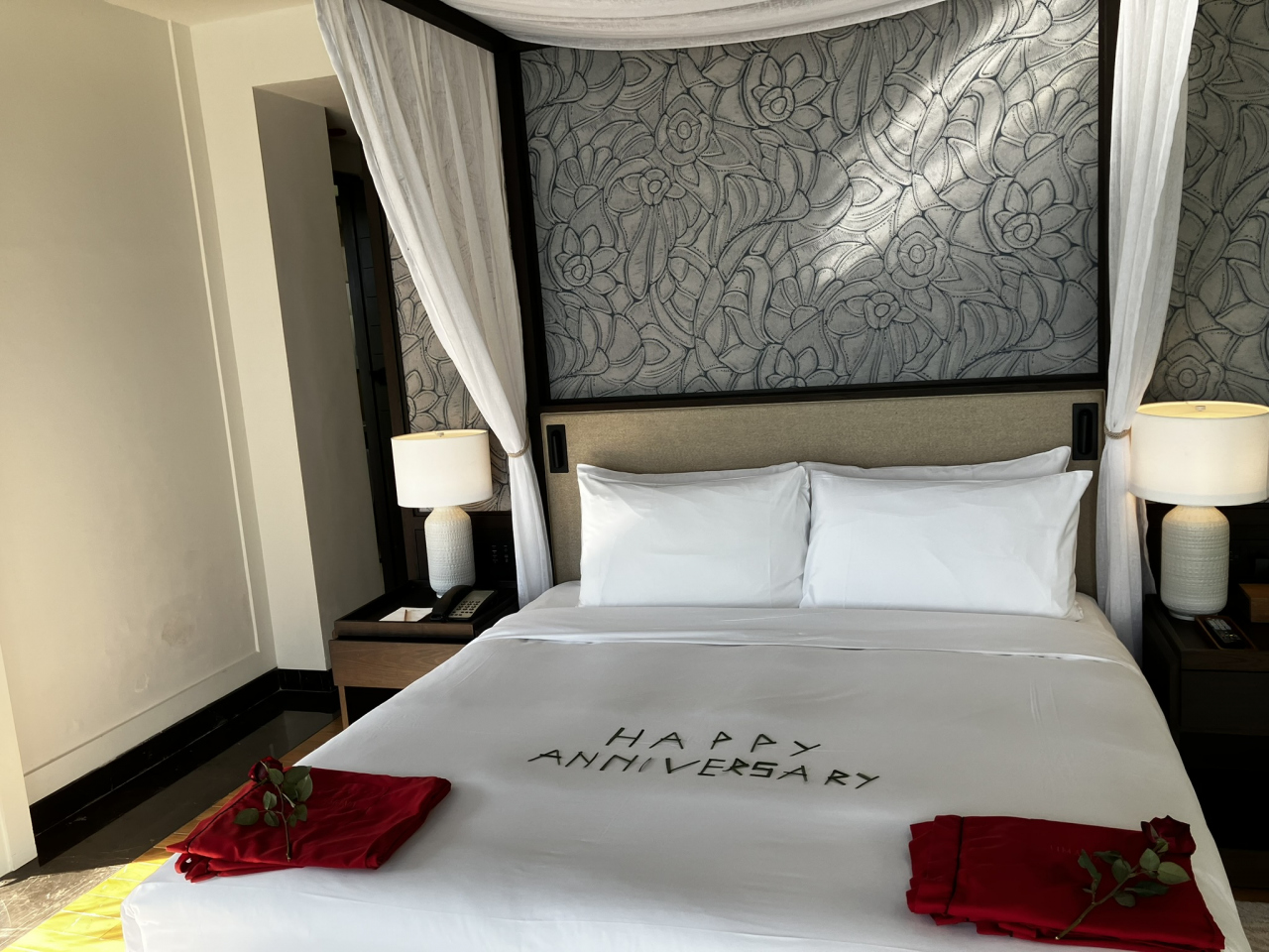 アニバーサリーのベッドデコレーションやケーキなどサプライズを用意してくれて嬉しかったです。
