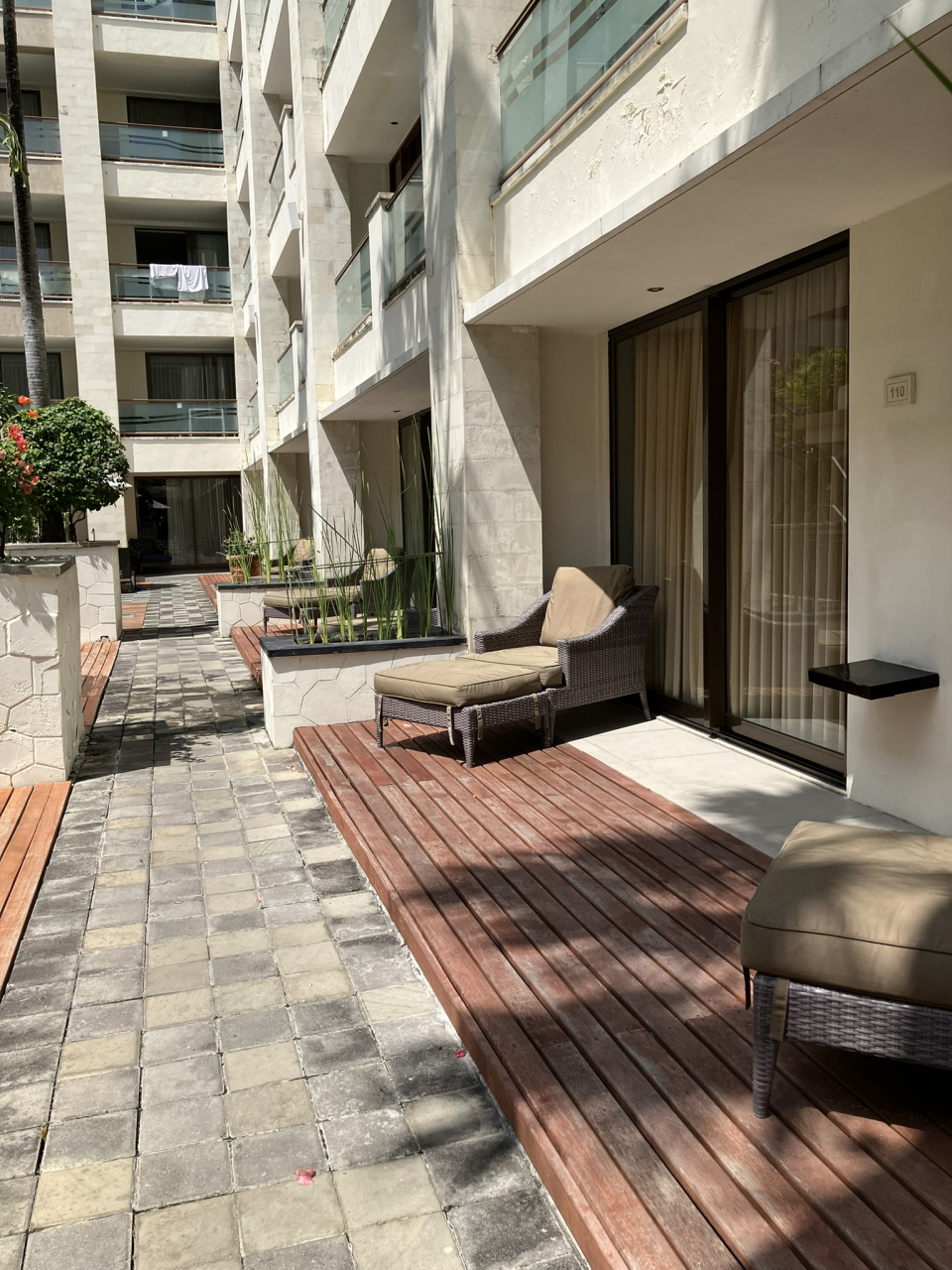 ホテルはプールを囲むように客室があり、1階はプールアクセスルームでした。