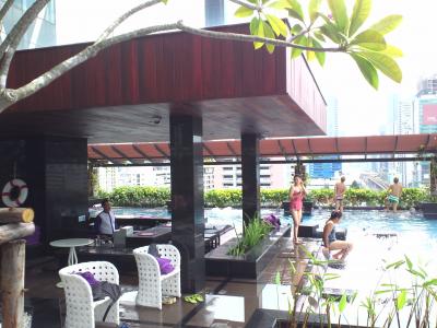 移動はとても楽です。まだ数年しか経っていない新しいホテルという事で宿泊しました。が、室内は結構キズがあったり汚れていてビックリ。写真ではテーブルがありましたが、実際はありませんでした。さらに、トイレにドアが無く!これにはかなり戸惑いました。4泊しましたが、4日目の夕方部屋へ戻ったところ掃除を忘れらていました。また、掃除もあまりキレイではありません。プールへ行く際、プール横の更衣室で着替えるようになっているんですが、殆ど守られていませんでしたね。うーん、場所と値段とオシャレ度重視な方にはオススメします。最後に、空港へタクシーで向かう場合、向かい側の車線へUターンし高速入り口へたどり着くまでかなり時間がかかります!