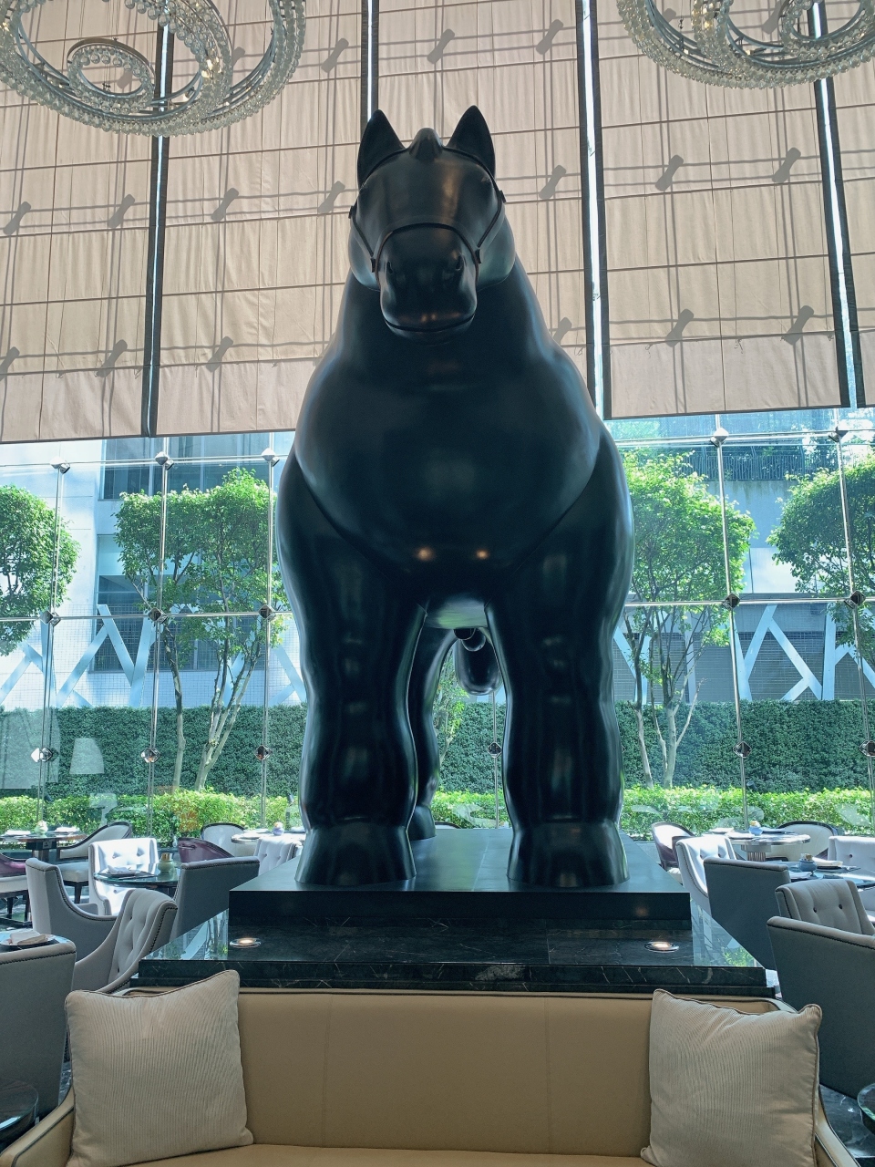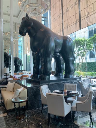 フェルナンド・ボテロの大きな馬の彫刻が真ん中にありラグジュアリーな雰囲気です