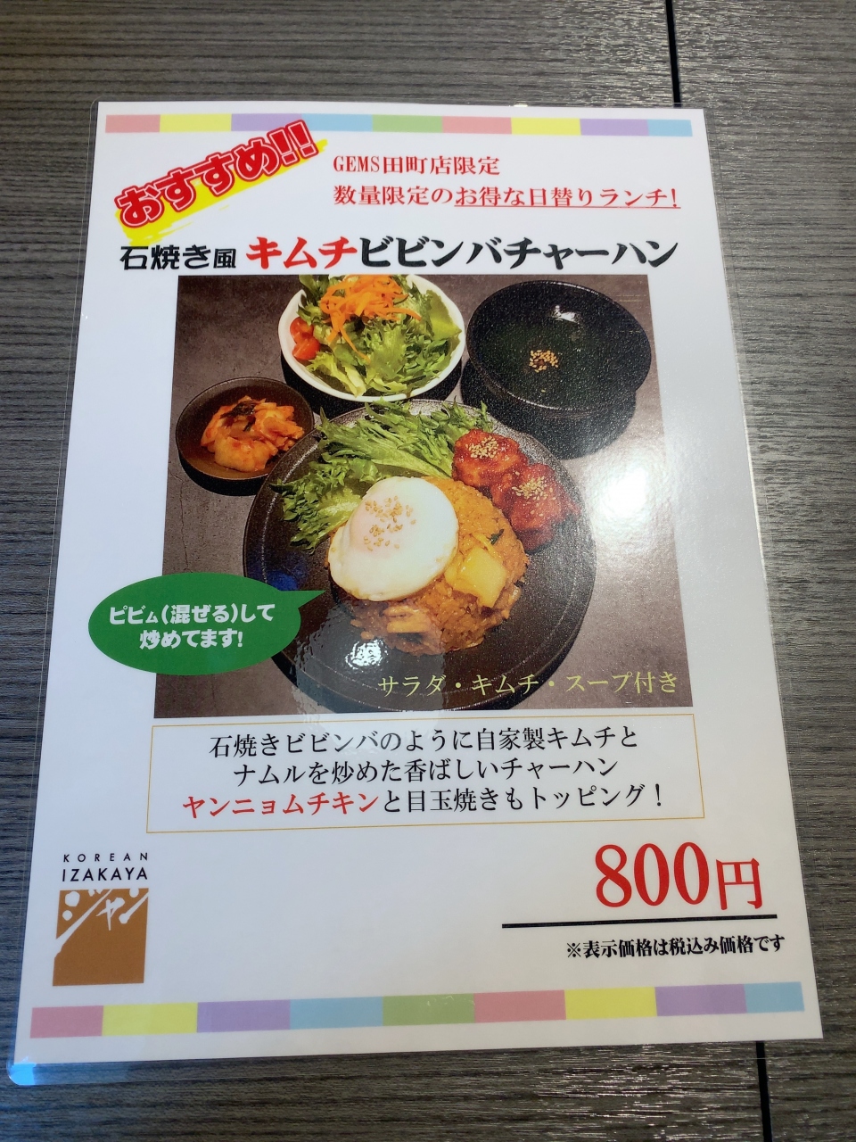 GEMS田町の6階に新しく開店した韓国料理店です