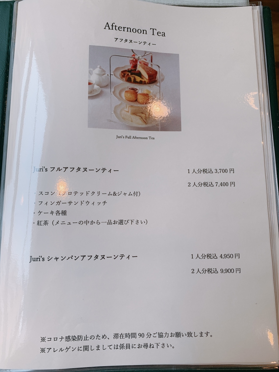 今回はJuri'sフルアフタヌーンティーを1人前で注文(3,700円税込)