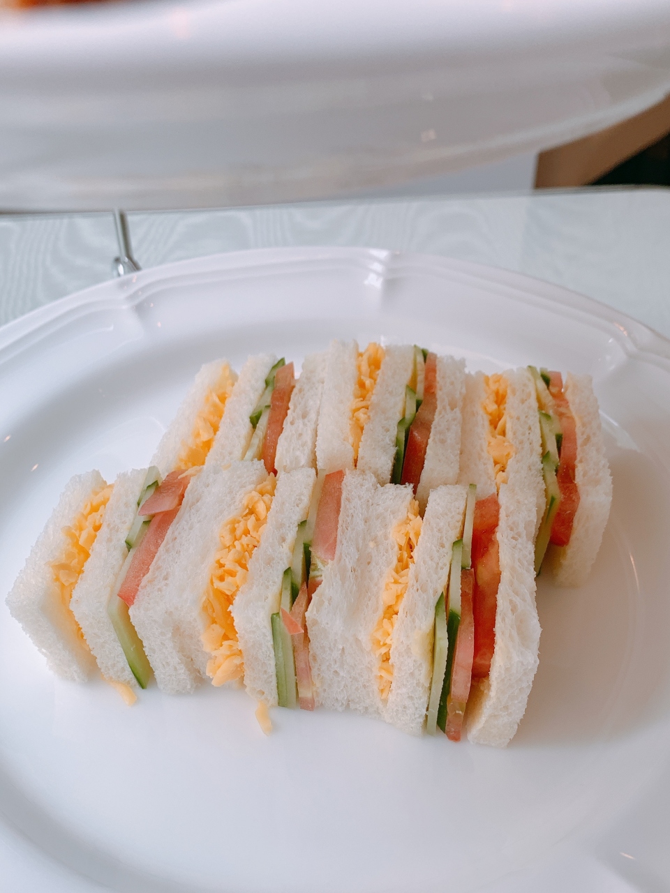 内容はスコーン、フィンガーサンドイッチ、ケーキ3種、紅茶