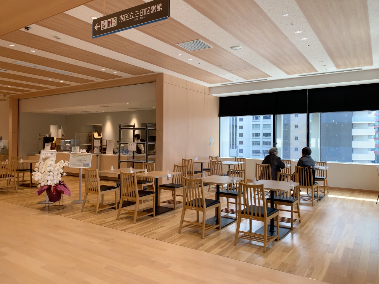 その4階にある三田図書館併設のカフェはみなと茶寮として開店しました