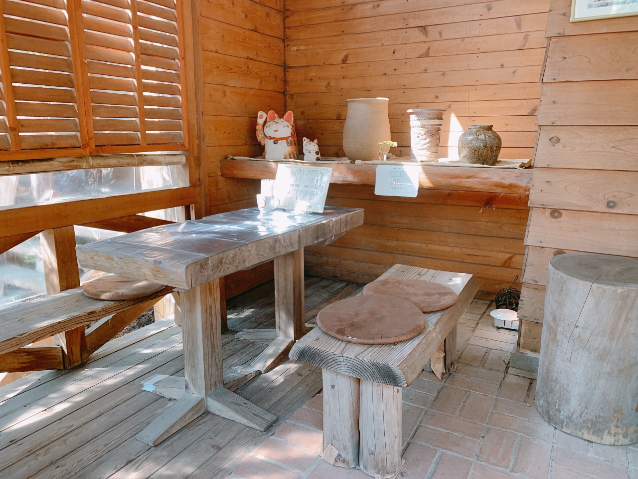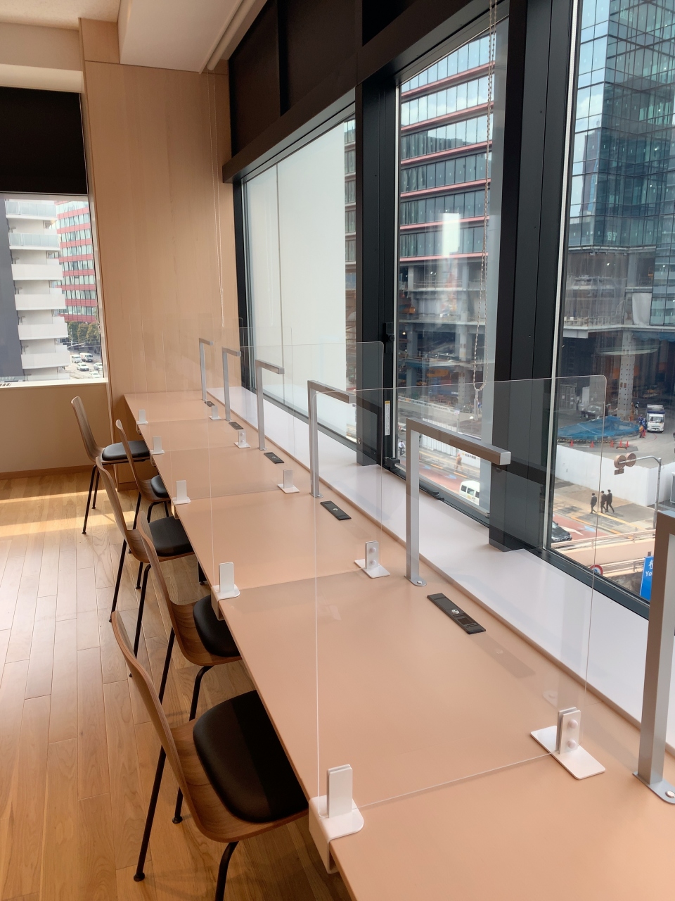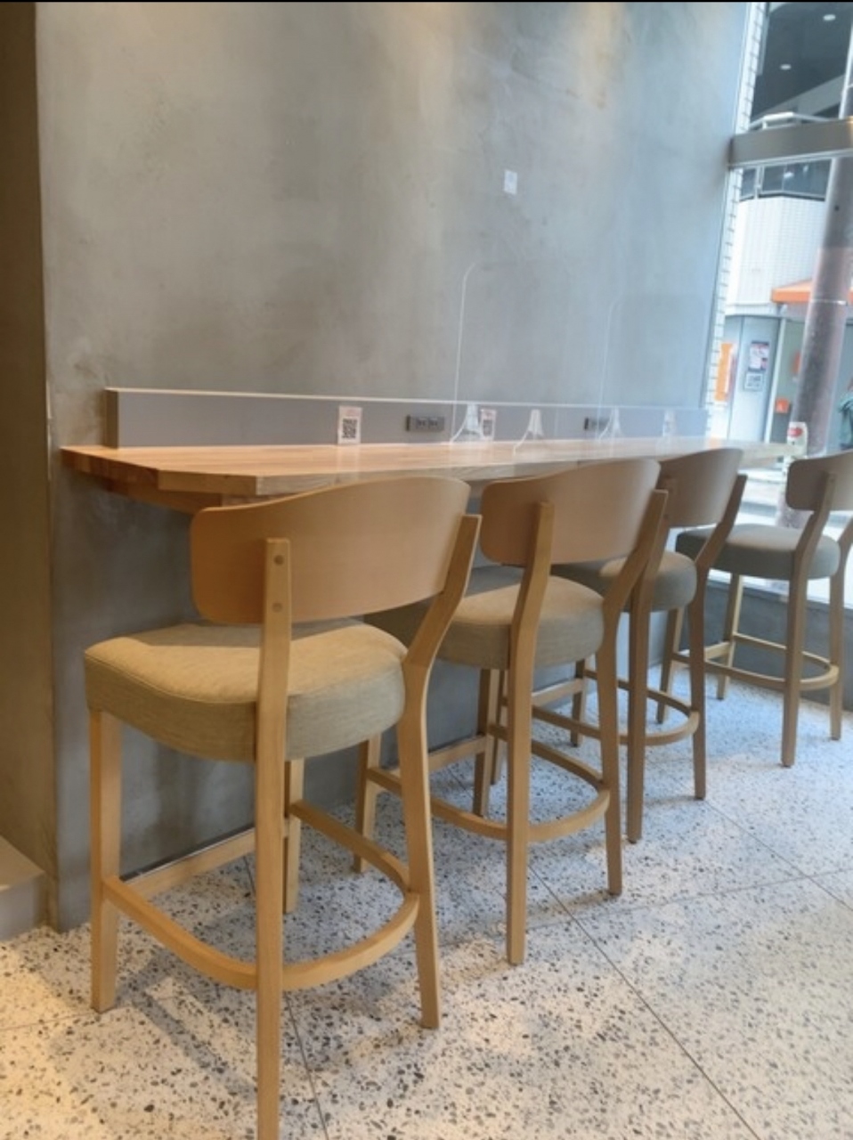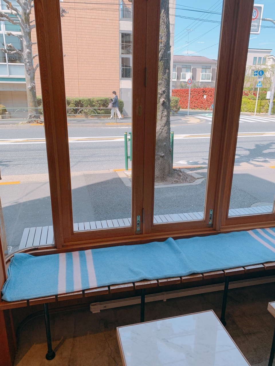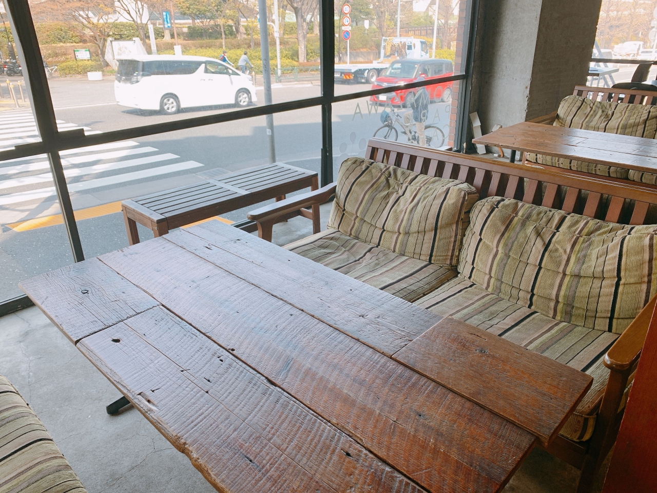 一番大きいスペースは入り口横のベンチで大きな窓から外を眺められます。