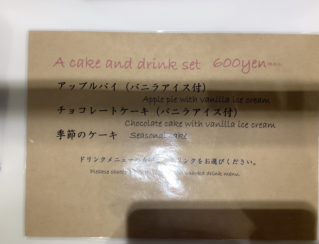 メニューは飲み物とケーキ3種類のみの取り扱いですが、窓側の席にコンセントがあり作業に向いています。