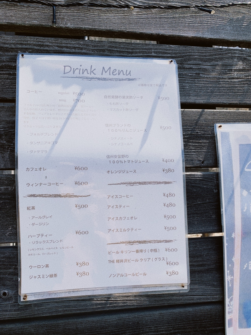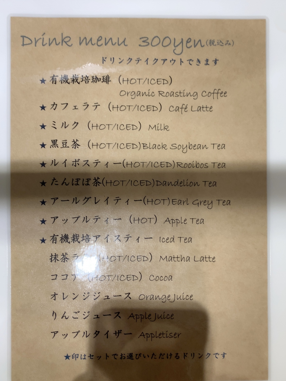 公的施設にあるお店のせいか、飲み物の値段が200円から400円と破格です