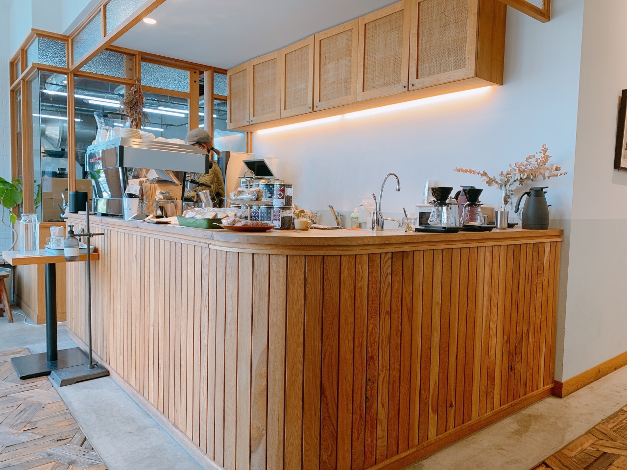 お店の半分は大きな焙煎機があり、イートインスペースは全部で5、6人程度の椅子のみです