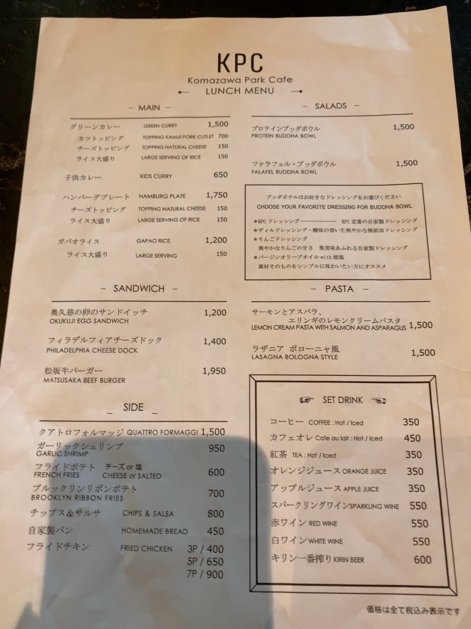 食事は1,000円から2,000円程度の間の価格帯で味は一般的なカフェご飯のレベルです