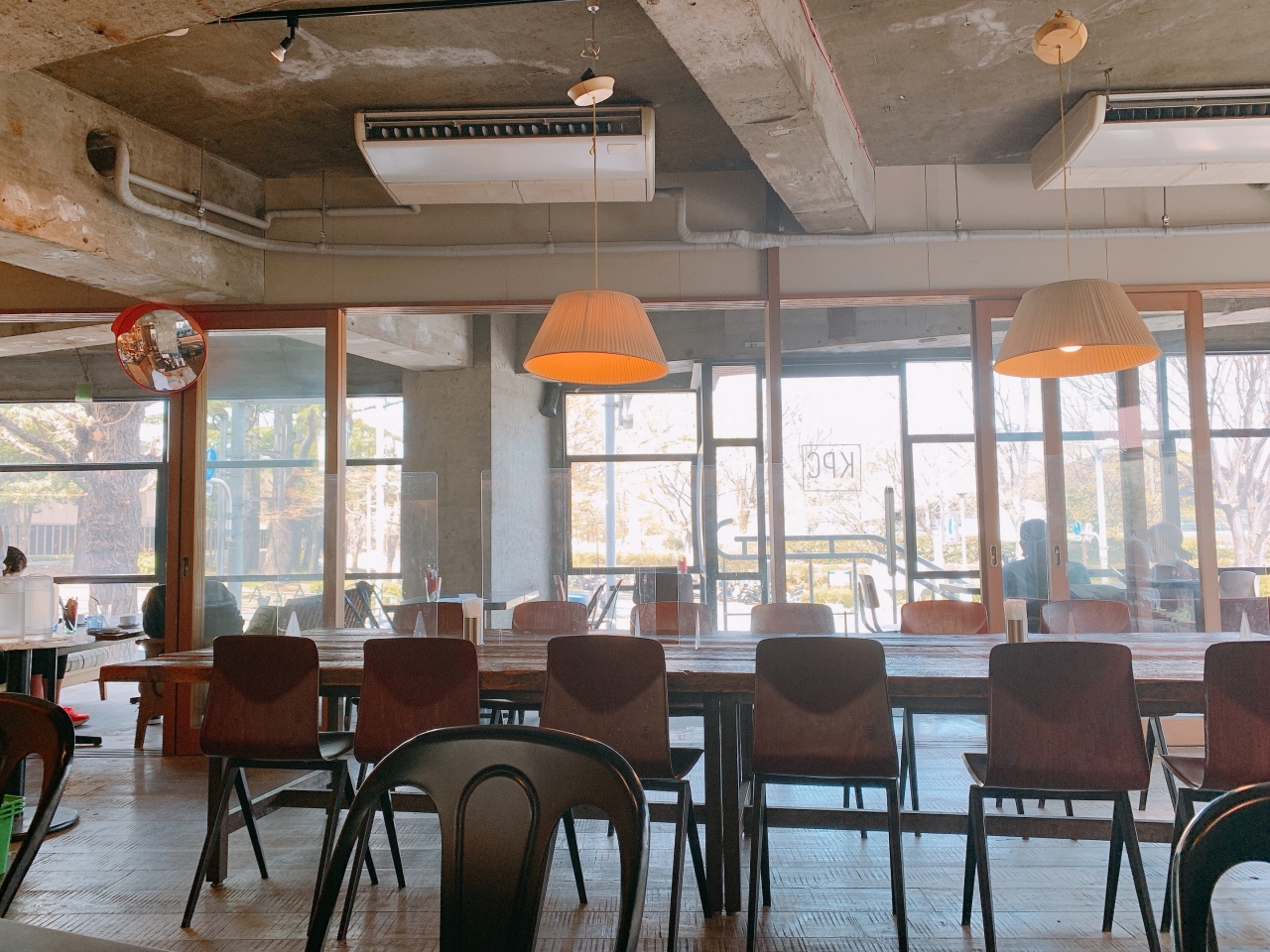 公園の自然を眺められる窓側の席は犬連れの方が優先的に案内されます