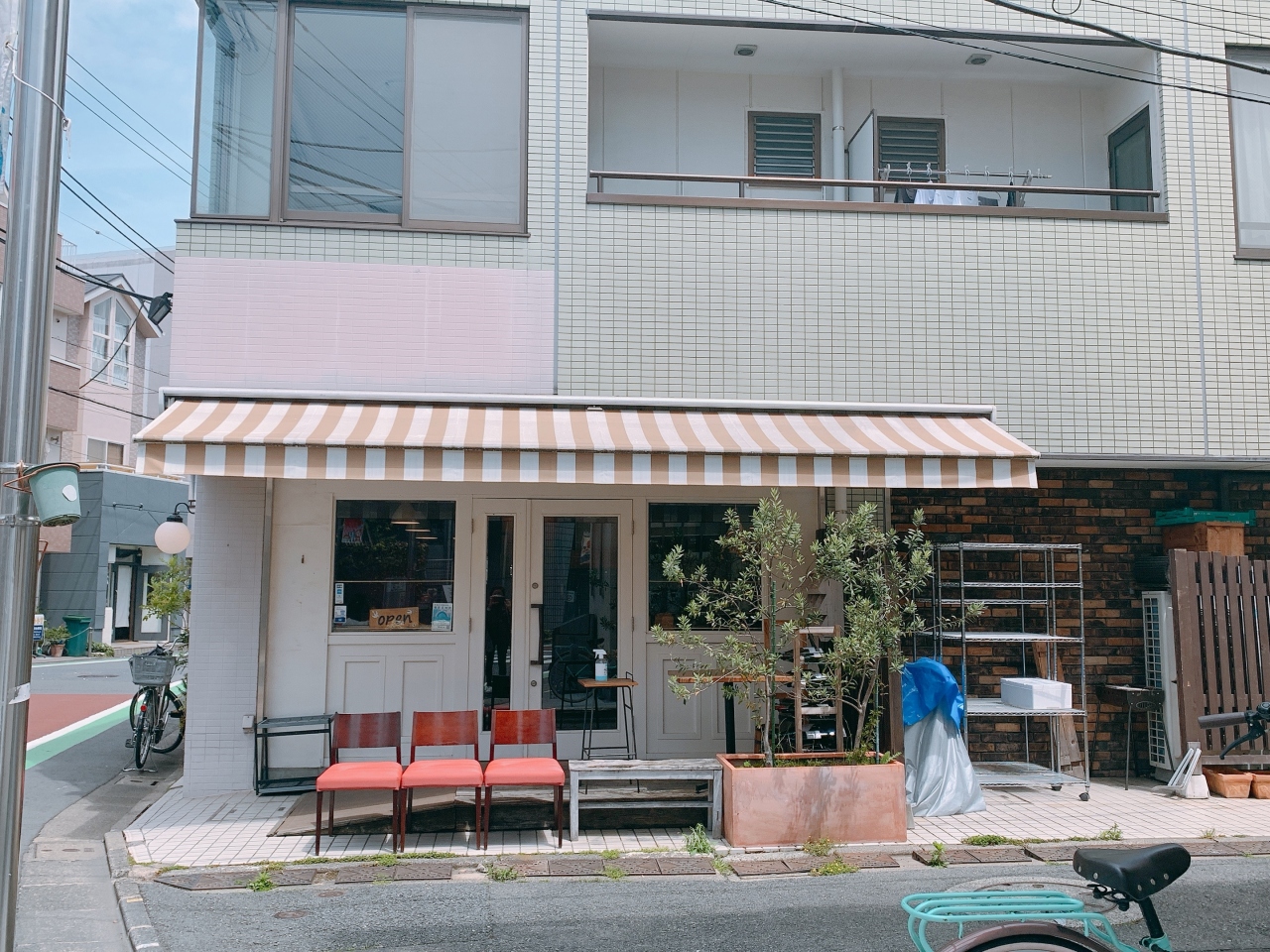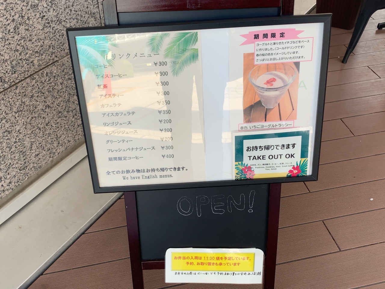 お店横に椅子とテーブルがあり、天気のいい日はそこで飲み物を頂けます。