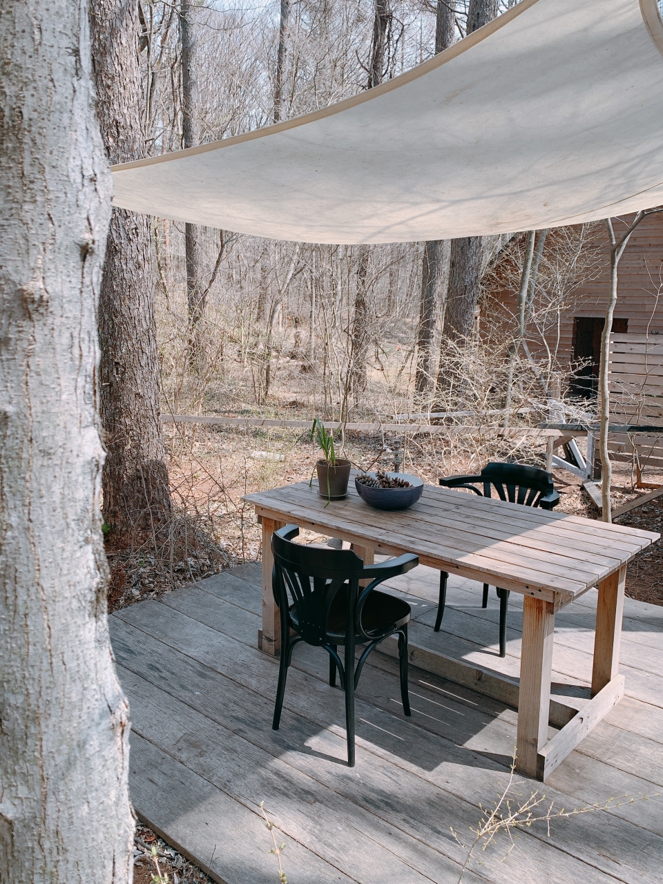 敷地内は木々が生い茂り、この森の中に小屋が隠れています。